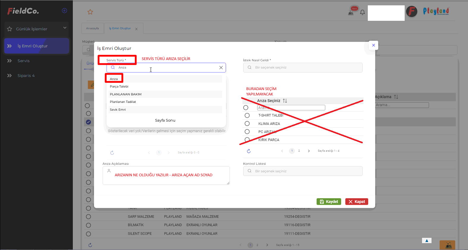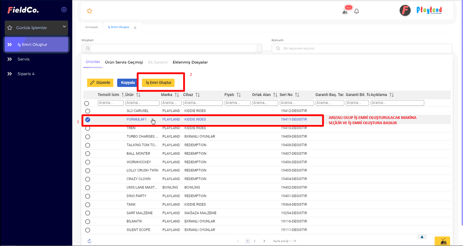 https://playland.fieldco.com.tr ADRESİNDEN TEKNİK SERVİS PROGRAMINA