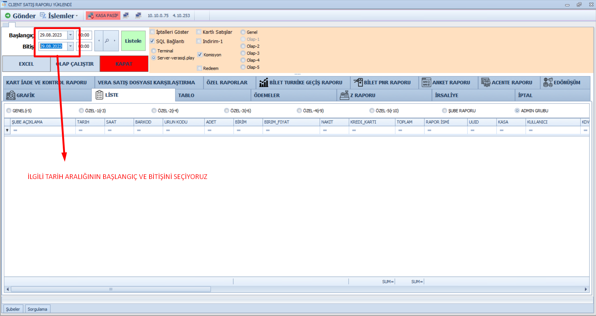 ÇIKAN EKRANDA GEREKLİ TARİH ARALIĞI SEÇİLİYOR VE HEMEN YANINDAKİ YEŞİL RENKTE
