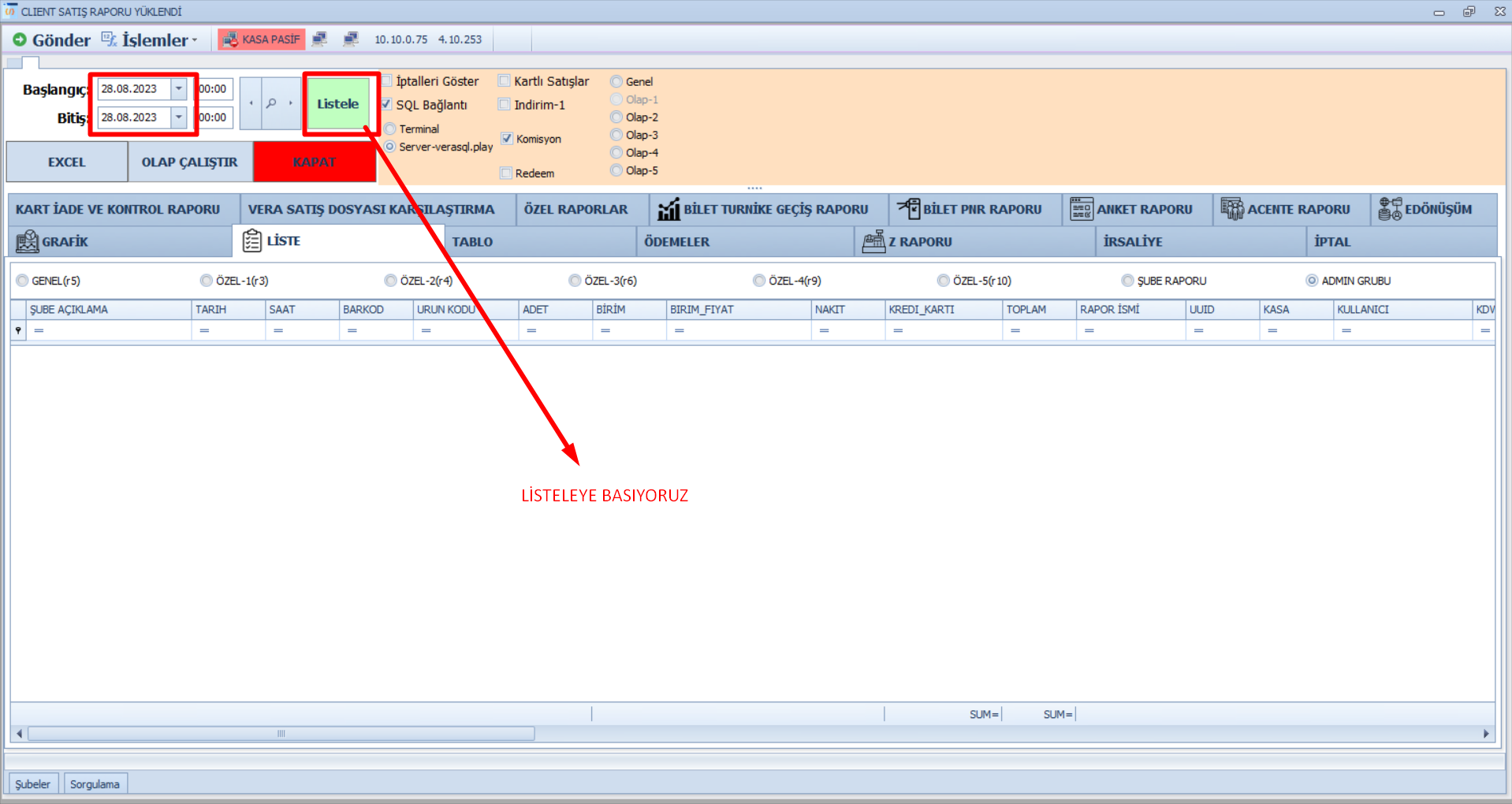 PROGRAMINDAN SAĞ BÖLÜMDE BULUNAN SATIŞ RAPORUNA TIKLANIR.