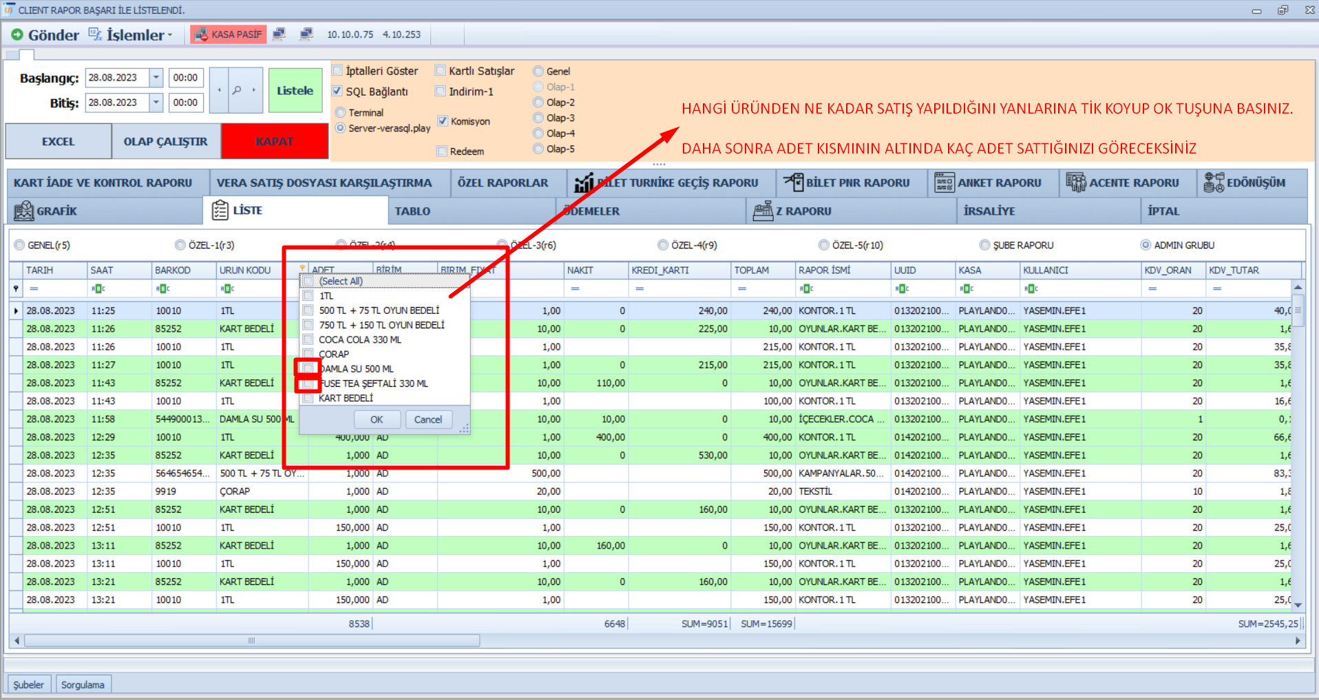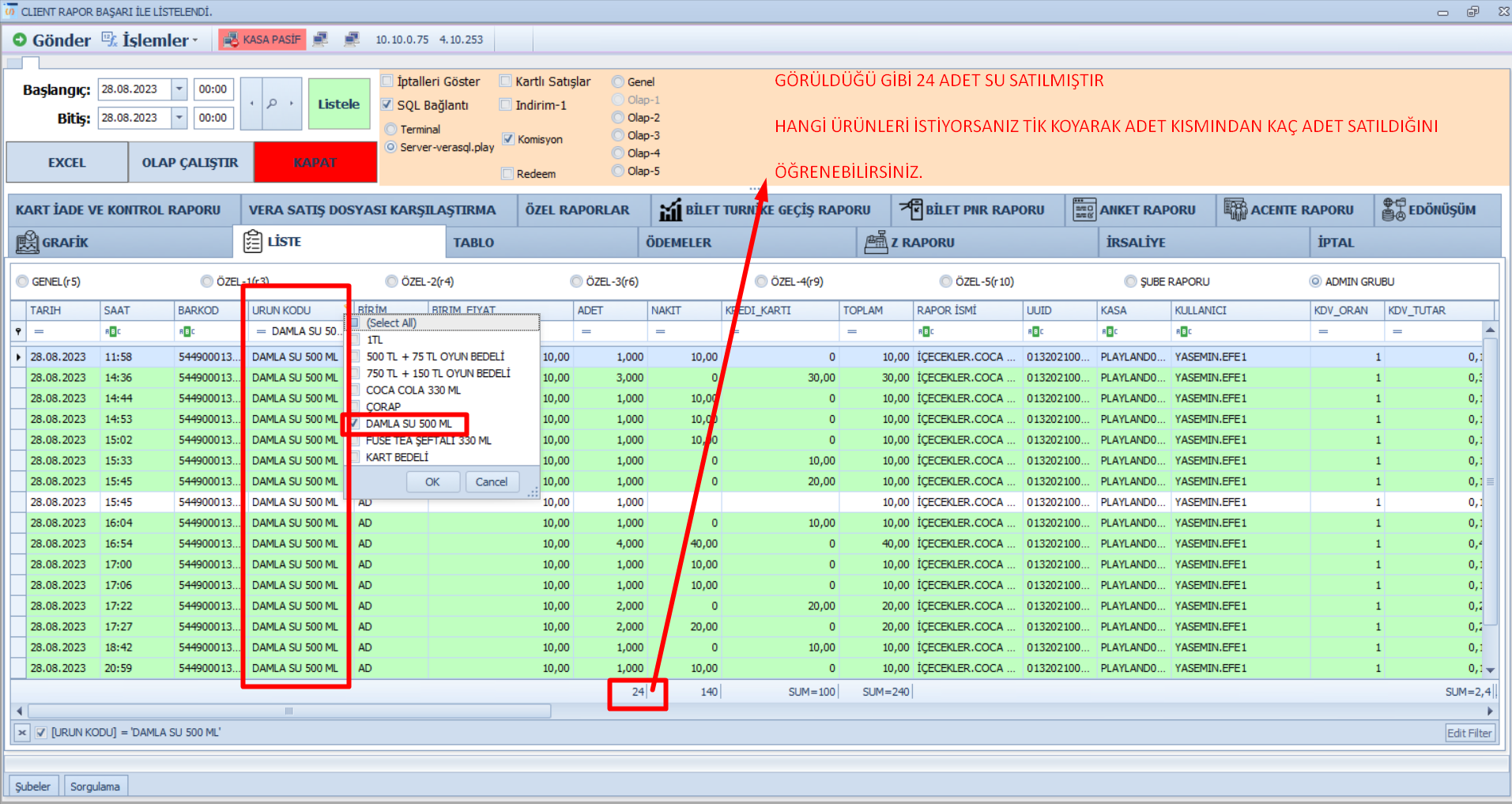 TUŞUNA BASTIĞIMIZDA KAÇ ADET SATILDIKLARINI GÖREBİLİYORUZ.