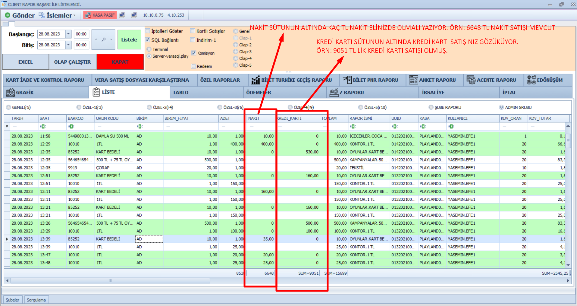 T KART ADETLERİNİ KASA KAPANIŞINDA T KART STOK TABLOSUNA İŞLİYORUZ.
