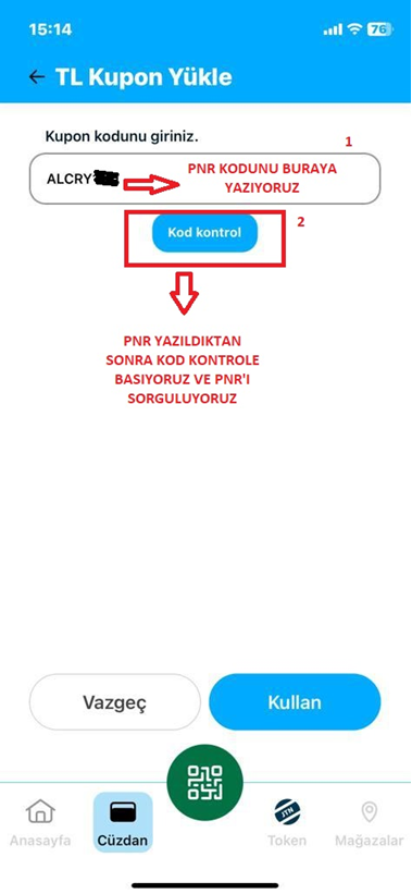 MOBİL UGULAMADA PNR NASIL YÜKLENİR?